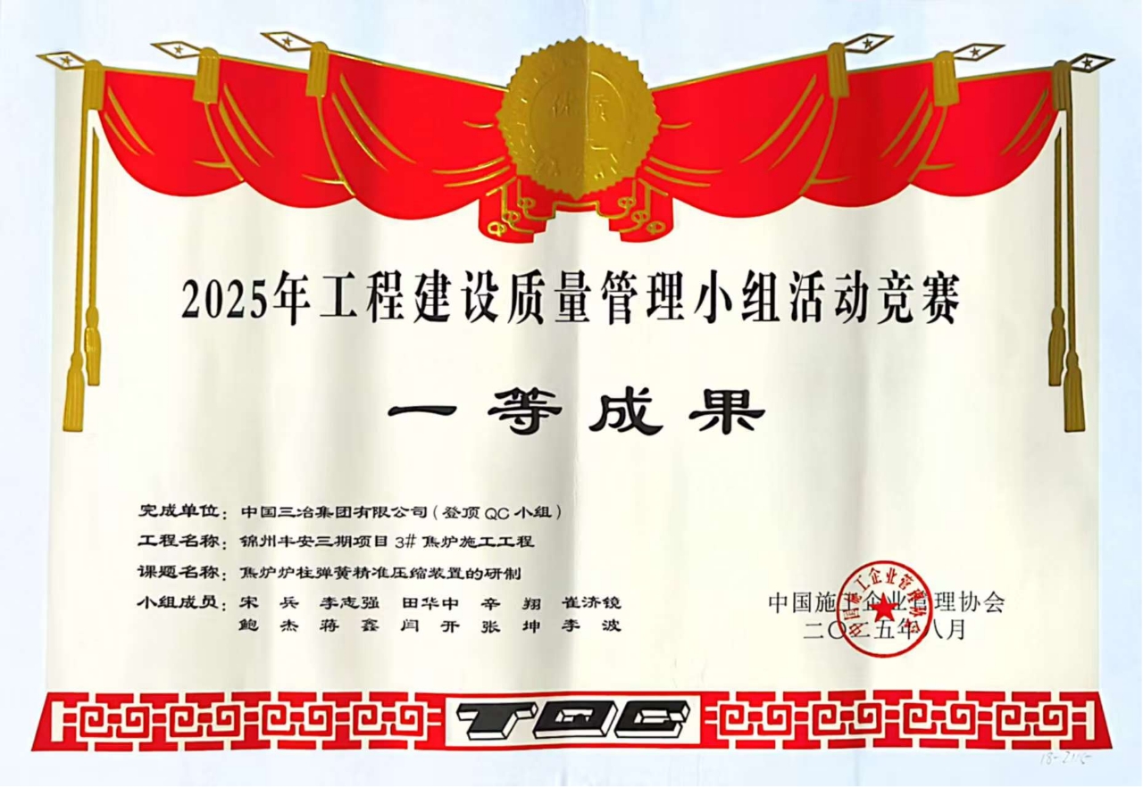 與往年相比,中國三冶今年獲獎數(shù)據(jù)實現(xiàn)多項突破:一等獎數(shù)量同比增長33.33%,二等獎增長50%,創(chuàng)新型成果更是翻倍至4項,增幅達(dá)100%。其中,工業(yè)工程公司"焦?fàn)t爐柱彈簧精準(zhǔn)壓縮裝置的研制"成果,不僅以遼寧省綜合評分第一名的成績斬獲"最佳發(fā)布獎",更通過將彈簧壓縮精度控制在"±1mm"的嚴(yán)苛標(biāo)準(zhǔn)內(nèi),為同業(yè)同類工程提供了可復(fù)制的精準(zhǔn)質(zhì)量管控方案。這正是中國三冶質(zhì)量管理從"解決問題"向"創(chuàng)造標(biāo)準(zhǔn)"轉(zhuǎn)型升級的生動體現(xiàn)。